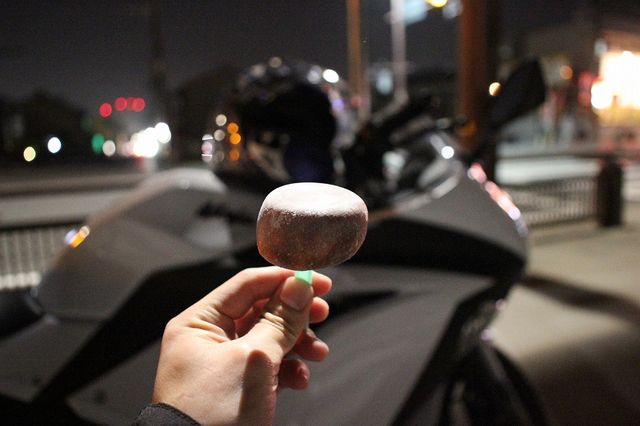 思いっきり歩道だけど、エンジン切ってるし人通りもほぼ皆無だったから問題ないよね…?
